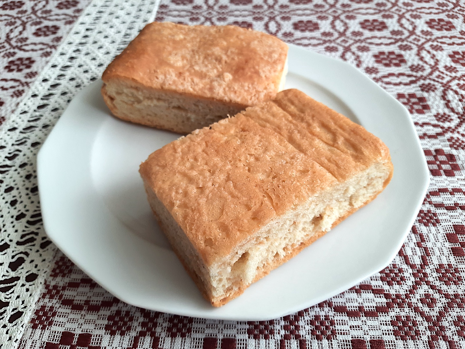 - Auf ein Blech geben, 30 Minuten gehen lassen und im vorgeheizten Backofen auf 180° 45 Minuten backen.